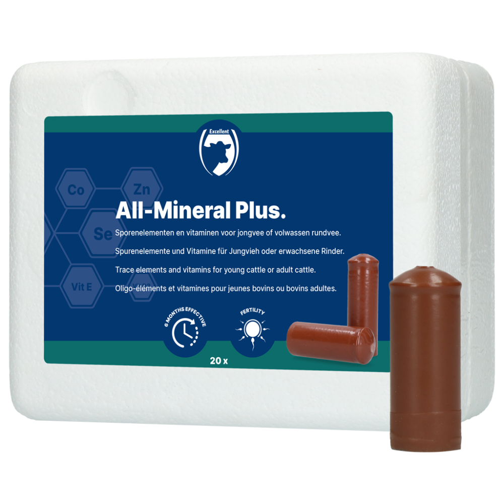 Als u op zoek bent naar een effectieve manier om de groei, vruchtbaarheid en gezondheid van uw rundvee te ondersteunen, dan is de All-Mineral Plus bolus de perfecte keuze. De bolus is een kosteneffectieve oplossing die zichzelf terug verdient. Dus gaat uw jongvee op stal of in de wei? De All-Mineral Plus bolus hoort erbij!