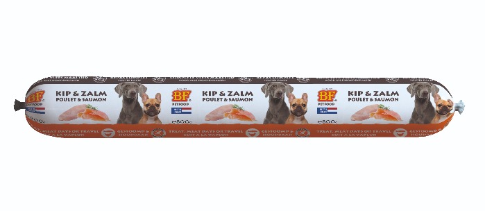Biofood vleesvoeding worst Kip en Zalm hondenvoer 800gr