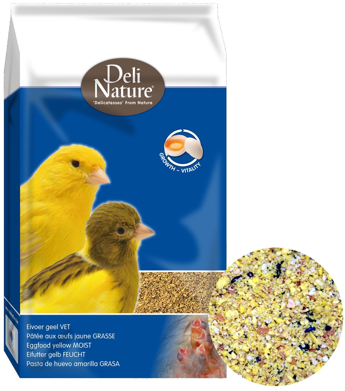 Geel eivoer vet van Deli nature is het basis eivoer dat aan kanaries en tropische vogels gegeven kan worden. Het is een kant en klaar vet eivoer. De grove structuur zorgt voor een gegarandeerde goede opname. Eivoer van Deli Nature is verrijkt met 100% natuurhoning waardoor gezorgd wordt voor een hoge smakelijkheid. Medicijnen of extra vitaminen kunnen aan het eivoer worden toegevoegd op opname te verbeteren.