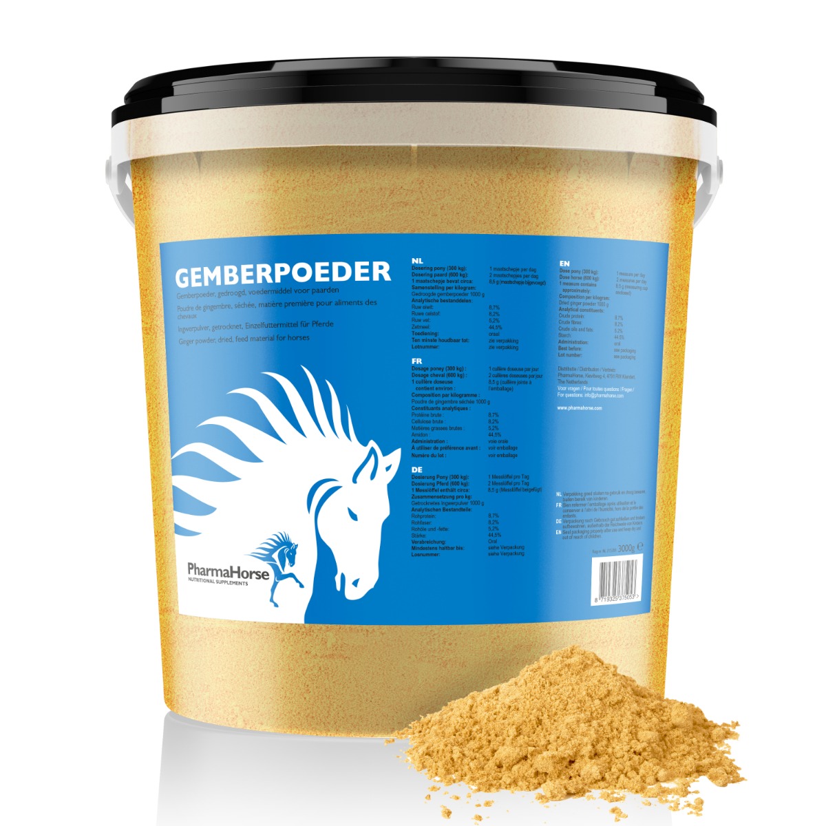 PharmaHorse Gember bestaat voor 100% uit gedroogd gemberpoeder. Gember helpt de spijsvertering te ondersteunen* en is goed voor een normale darmfunctie*