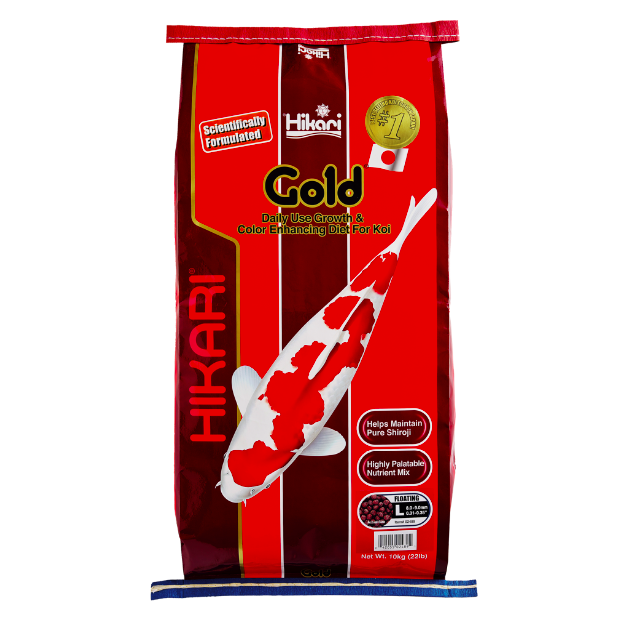 Hikari Gold Large 10 KG is al meer dan 50 jaar het beste dagelijkse kleurvoer voor koi en andere vijvervissen. De vernieuwde formule bevat meer spirulina en een toevoeging van krill, die zorgen voor een intensere kleurversterking, vooral van de Hiban (rode kleur). Dit premium voer is speciaal ontwikkeld om je koi en vijvervissen te voorzien van alle voedingsstoffen die ze nodig hebben voor gezonde groei en prachtige kleuren. De hoogwaardige ingrediënten zorgen ervoor dat je vissen optimaal kunnen groeien en levendig blijven, met een mooie, uitgesproken kleur.