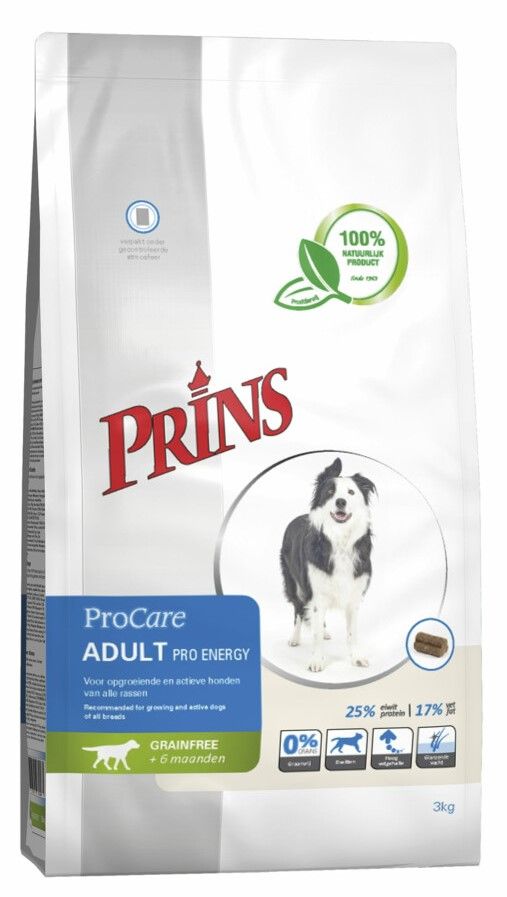 Prins ProCare Graanvrij Pro Energy Hondenvoer is een premium, graanvrije voeding die speciaal is ontwikkeld voor opgroeiende en actieve honden van alle rassen. Deze voeding is ook ideaal voor honden die sportactiviteiten doen, evenals voor drachtige en zogende honden…