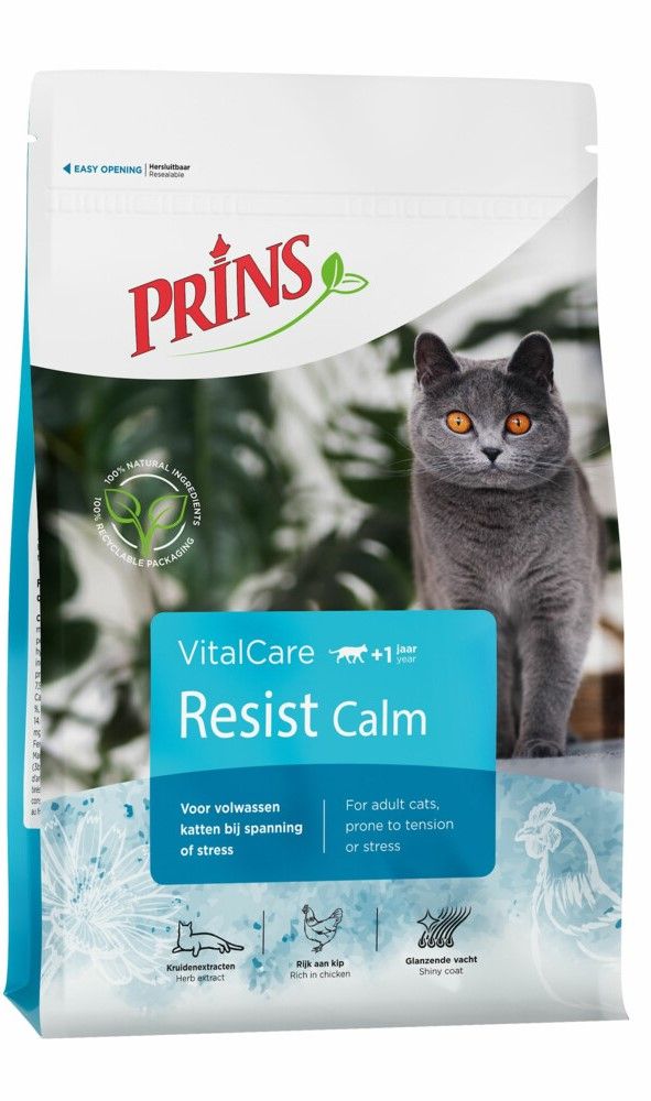 Prins Vital Care Resist Calm is een krokante voeding met kruidenextracten voor gevoelige volwassen katten. Ziekte, een operatie, angst, stress en hormonale schommelingen kunnen voor een verlaagde weerstand zorgen. Deze volledige voeding met kruidenextracten ondersteunt het immuunsysteem en verhoogt de weerstand van jouw kat.