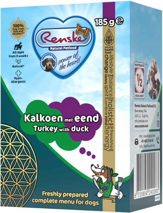 - Met 65% vers bereide kalkoen en eend als hoofdingrediënt