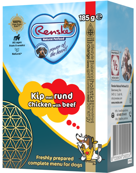 Met 60% vers bereide kip met rund als hoofdingrediënt