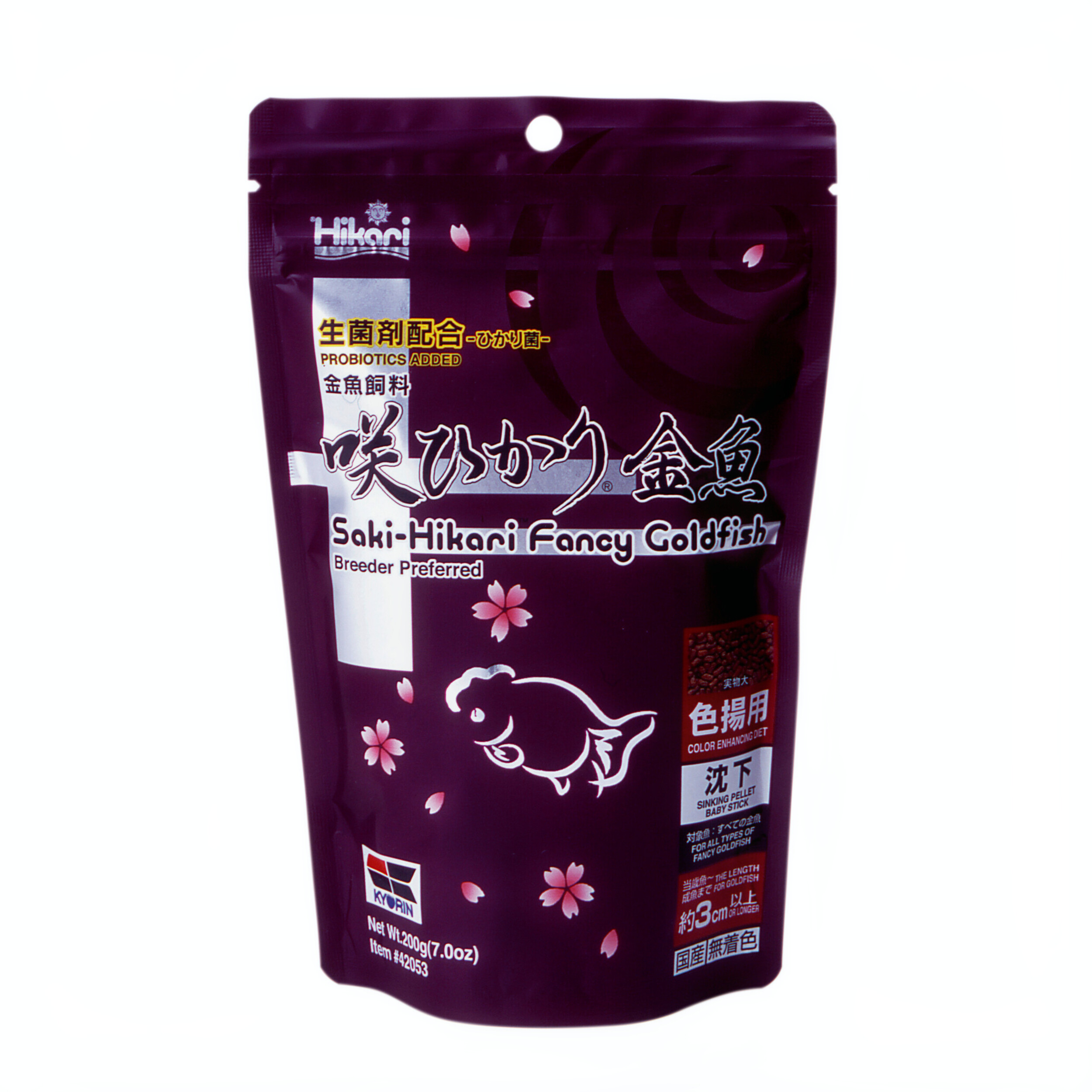 Saki Hikari presenteert met trots het speciaal ontwikkelde Fancy Goldfish Color voer. Dit 200g pakket staat garant voor een levendige kleurversterking en een betere gezondheid van uw vissen, zonder het aquarium met afval te belasten.