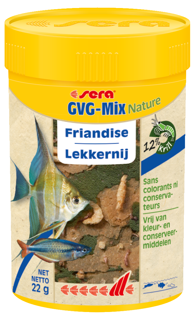sera GVG-Mix Nature is de lekkernij voor meer aan het oppervlak etende siervissen, dat geen kleur- en conserveermiddelen bevat.