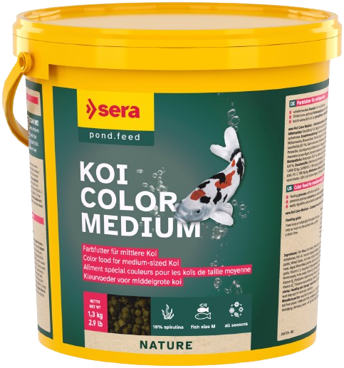De Sera Koi Color Medium – 3,8 Liter is een hoogwaardige, drijvende voeding speciaal ontwikkeld voor middelgrote koi. Dit bijzonder vormstabiele granulaat bevat 10% Spirulina, wat zorgt voor briljante kleuring van je koi. Het voer bevordert de gezondheid en groei van je koi door de uitgebalanceerde receptuur van plantaardige en dierlijke eiwitten, gammarus, krill, carotenoïden, sporenelementen en omega-vetzuren. Het is licht verteerbaar en ideaal voor volledige voeding het hele jaar door. Bovendien is het vrij van kleur- en conserveermiddelen, zodat het bijdraagt aan een gezonde vijveromgeving.