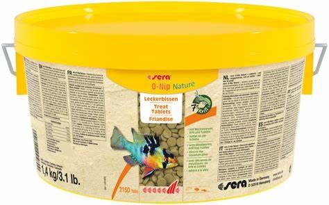 Sera O-nip is een begeerd tablettenvoer voor alle zoet- en zeewatervissen en vele lagere diersoorten. O-nip van Sera bestaat voor de helft uit hoogwaardig vlokkenvoer en voor de andere helft uit vacuümgevriesdroogde voederdiertjes (FD), zoals muggenlarven, krill en tubifex.