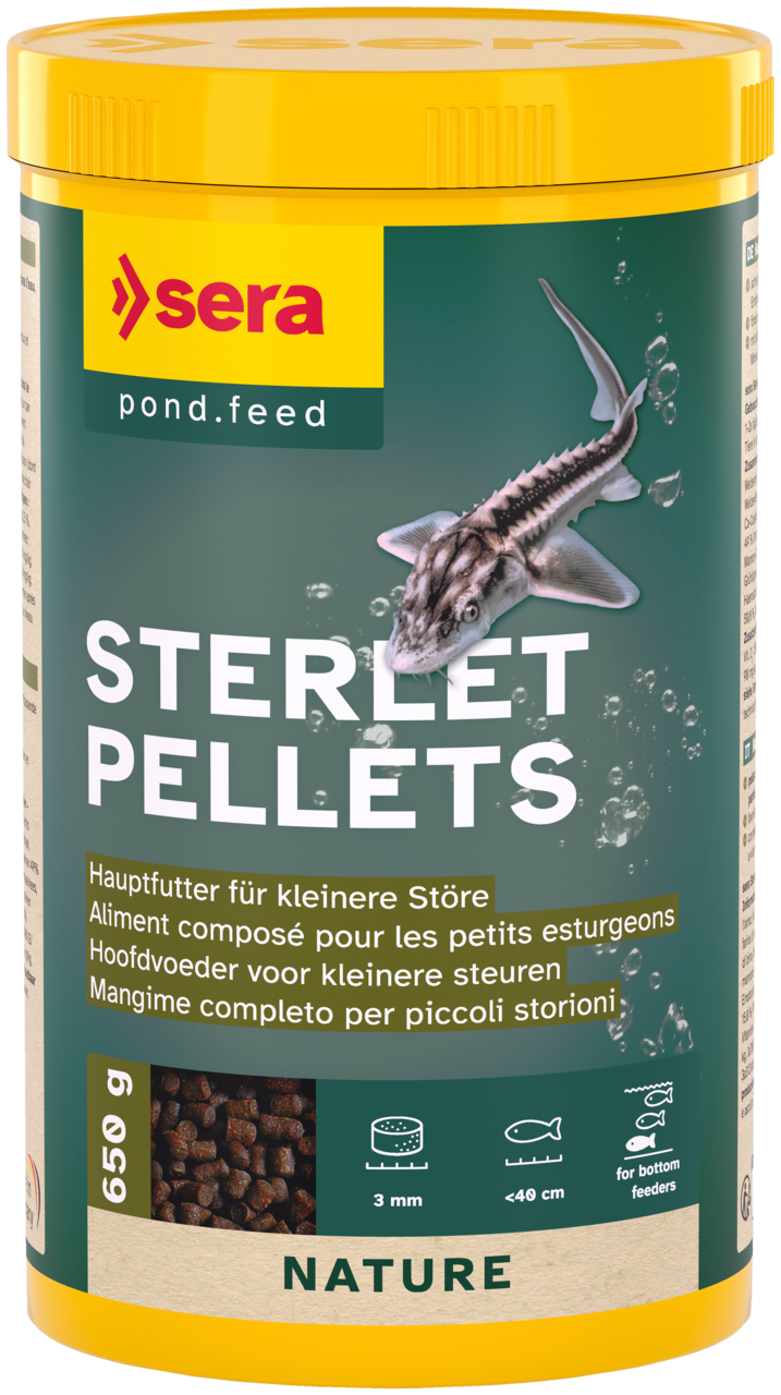 De Sera Sterlet Pellets is een hoofdvoer voor kleine steuren tot ca. 40cm.