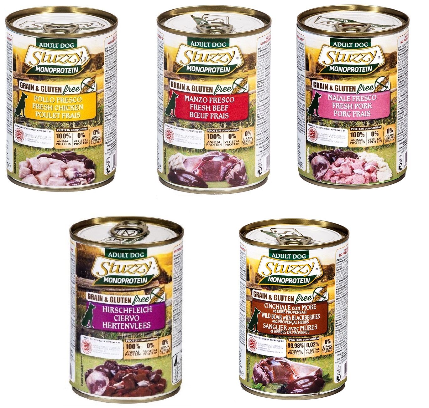 Sommige honden zijn gevoelig voor bepaalde eiwitten en kunnen profiteren van voeding met slechts één dierlijke eiwitbron, zoals de Monoprotein Blikken van Stuzzy. Dit natvoer is bovendien volledig graan- en glutenvrij.