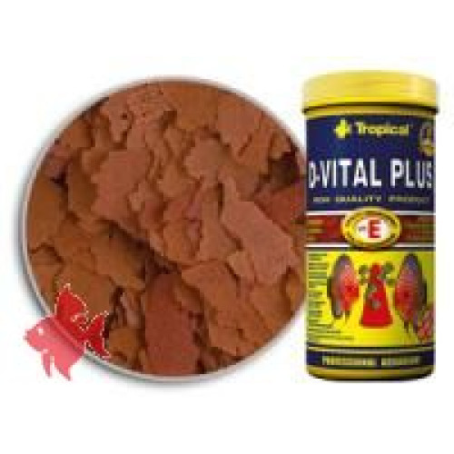 D-Vital Plus is een vitaliteitsverhogend vlokkenvoer met speciale voedingsmiddelen en versterkende eigenschappen, aanbevolen voor jongere discusvissen in de aanloop naar het afzetten en voor volwassen koppels voorbereid om af te zetten.